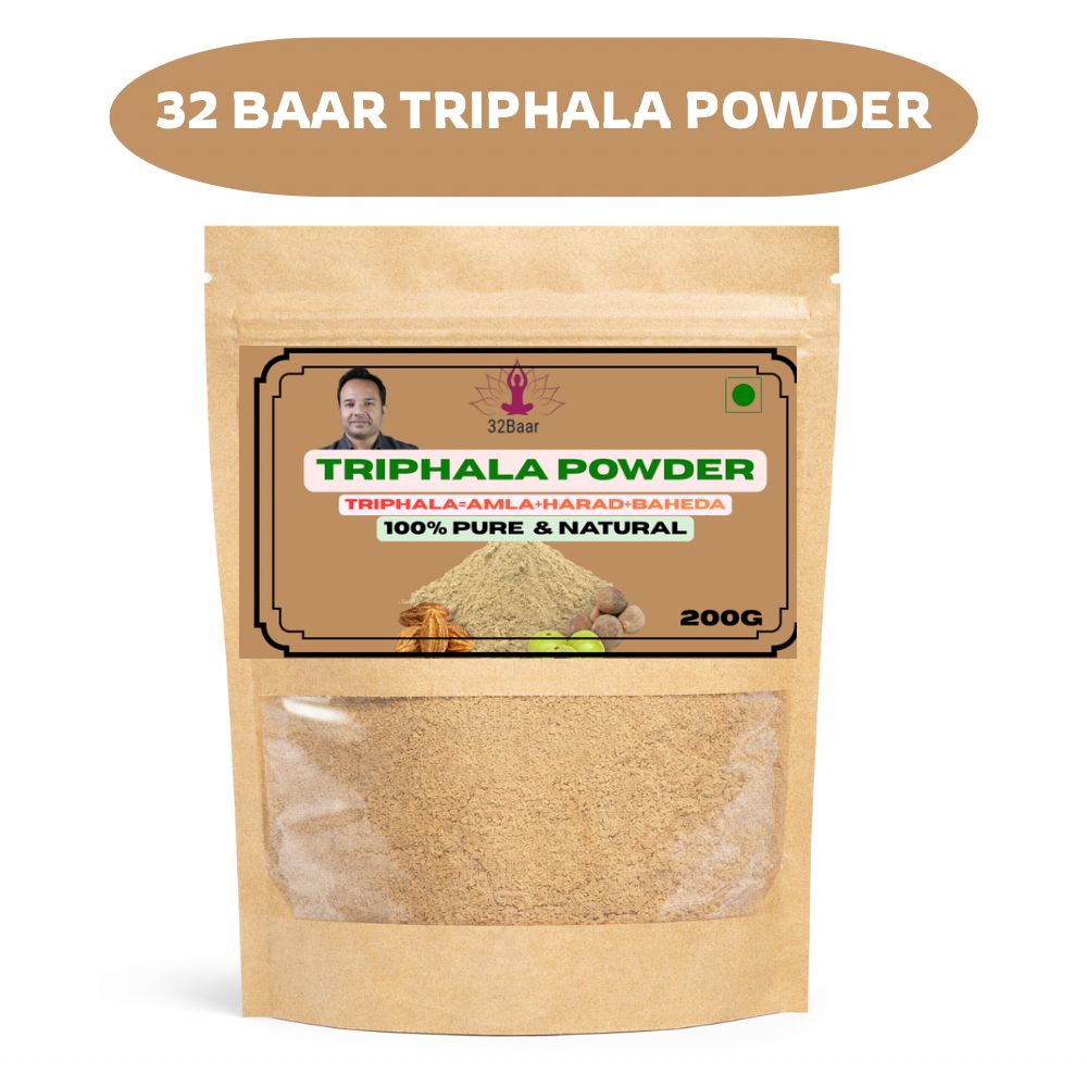 Triphala Powder from 32 Baar brand is a rich source of natural antioxidants, aiding in the neutralization of harmful free radicals and protecting cells from oxidative stress. It supports healthy liver function, promoting efficient detoxification and the elimination of toxins from the body. Regular consumption of Triphala Powder may also help maintain healthy digestion, alleviate occasional constipation, and facilitate regular bowel movements.